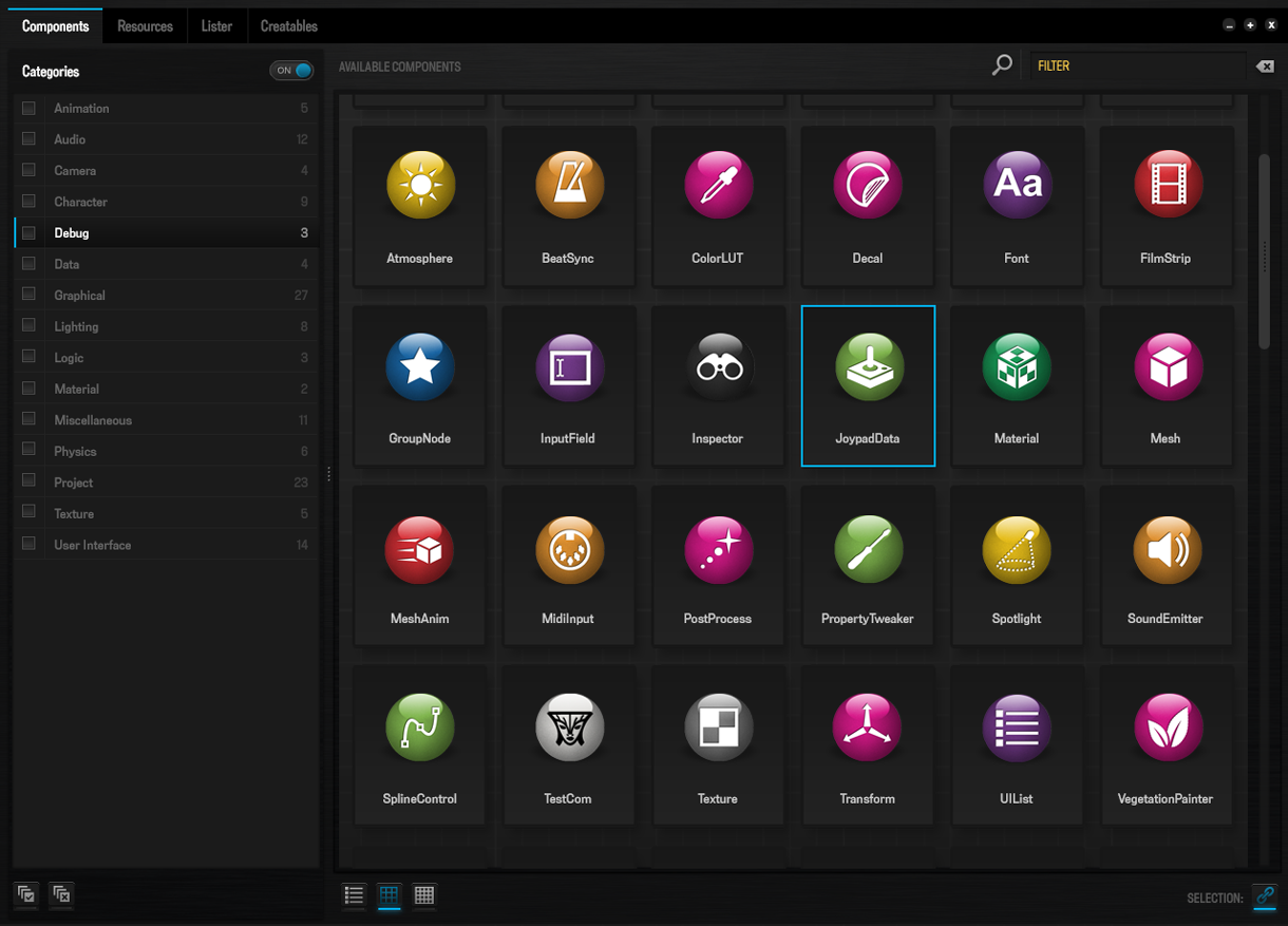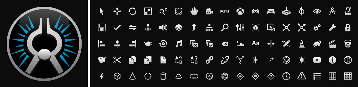 At its peak, the Forge team was comprised of 12 engineers and supported by a project manager and multiple quality assurance testers. The design team was myself as UI Lead working alongside a dedicated UX Designer. In addition to the branding and identity for the entire suite of applications, I was responsible for the creation of all multi-modal screen layouts in Qt Designer, styling all interface widgets via QSS, and developing the 400+ icon set to support the application’s interface and its component and creatable systems.