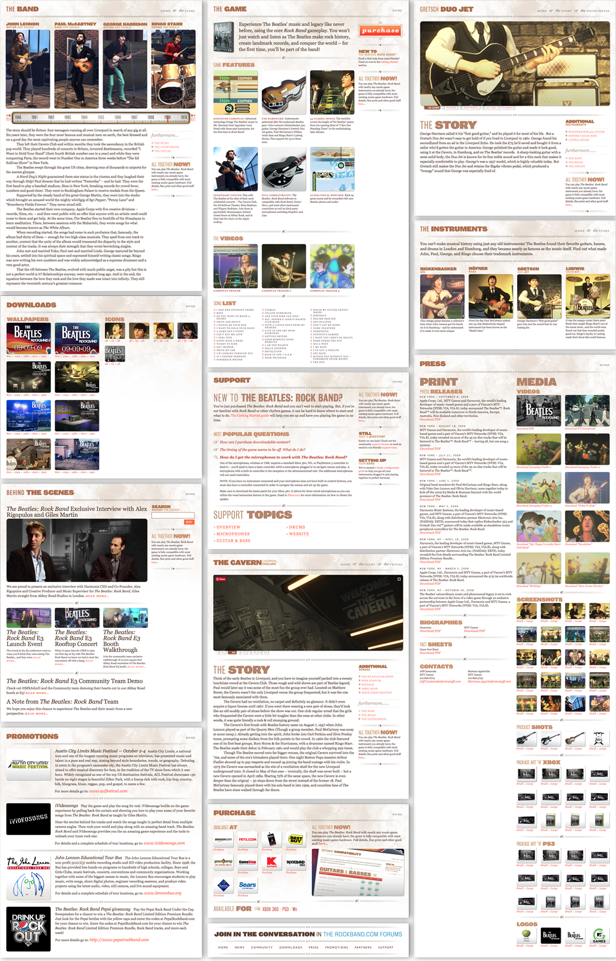The Beatles Rock Band website was envisioned as a destination for content worthy of a collector’s edition box set, complete with behind the scenes content and in-depth context for every facet of the game; from the band members and their instruments to the venues and pivotal narrative moments. Of course, the site also needed to hit the necessary marketing beats and act as a sales driver for the game.