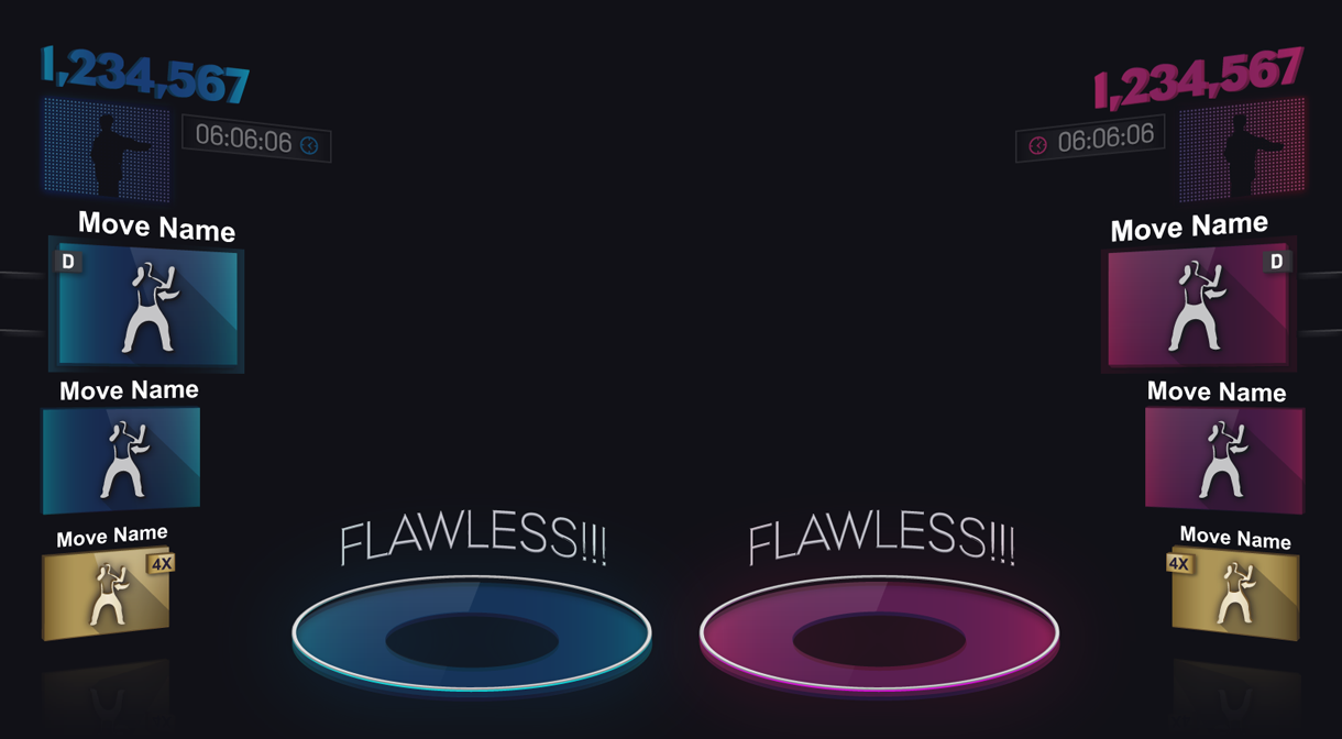 The HUD was also updated from the previous installments. Improvements focused on increasing informational clarity, improving accessibility for new and inexperienced dancers, as well as support for new gameplay mechanics.