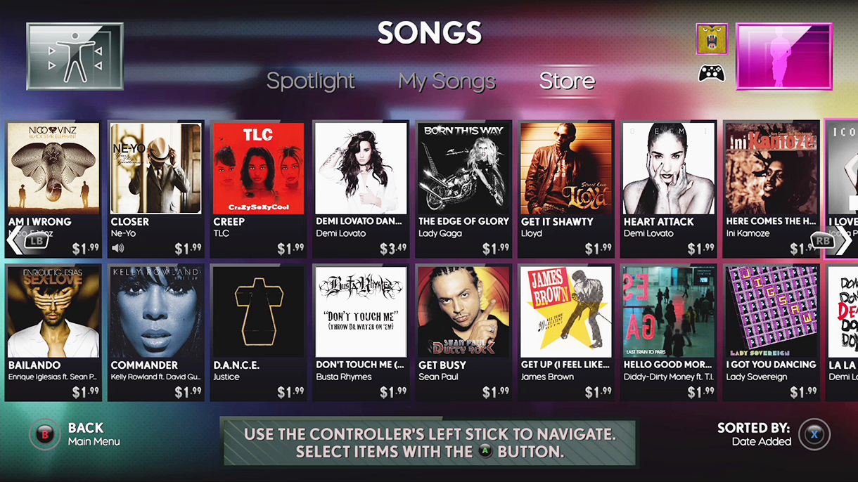 Paired with a small team of UI engineers, we implemented an entirely new interaction paradigm for the franchise in less than 6 months. A new tile-based system was designed to display a higher density of compelling content and unify the visual layer to support multiple modes of input: motion controls, traditional gamepad, and voice. We integrated the players song library with the downloadable content marketplace into a single view, resulting in an increased conversion rate to our ever expanding library add-on content.