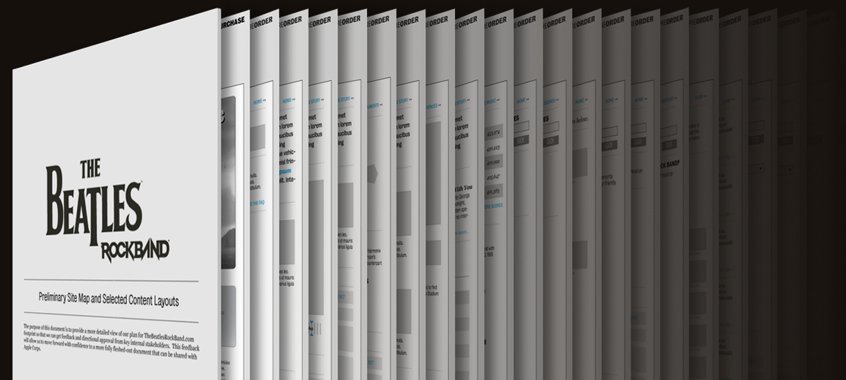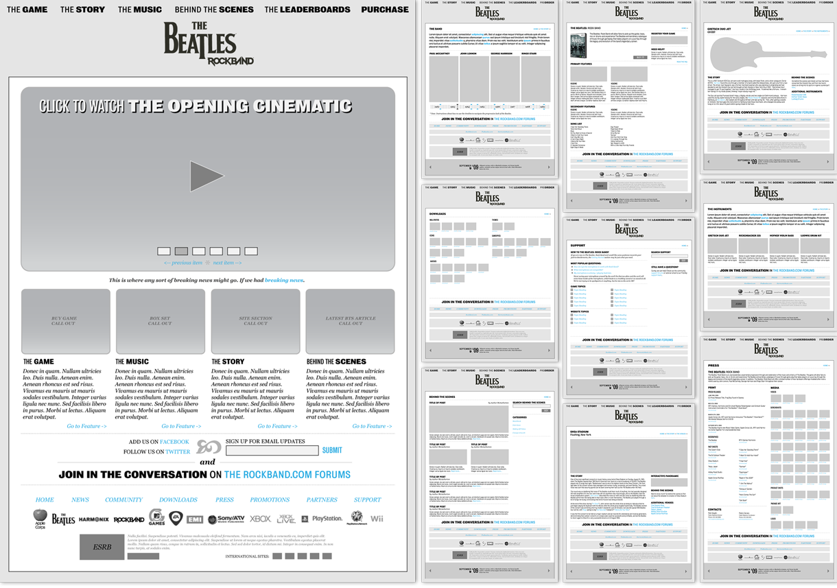 Beginning in February, I assembled the project plan to present to MTV Games and Apple Corp, highlighting content and feature rollouts to coincide with proposed marketing initiatives. This included a teaser site and private hub with exclusive content for pre-order holders in the spring, a press and marketing focused rollout in the summer, and a full launch in support of the game’s release in the fall. Wireframes were created to establish product scope and to gain buy-in from key external stakeholders.