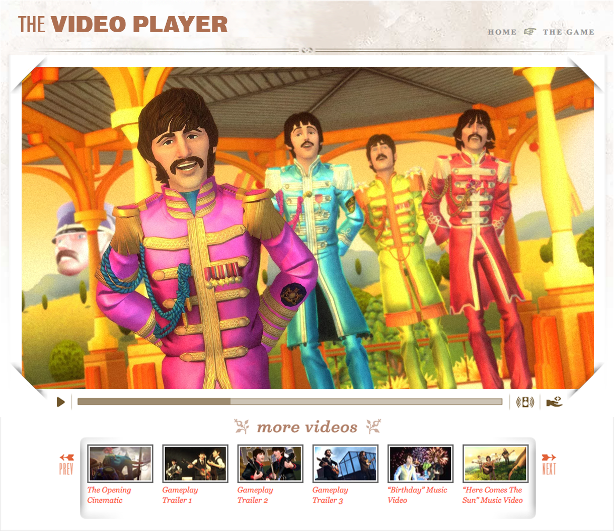 The Beatles Rock Band website was envisioned as a destination for content worthy of a collector’s edition box set, complete with behind the scenes content and in-depth context for every facet of the game; from the band members and their instruments to the venues and pivotal narrative moments. Of course, the site also needed to hit the necessary marketing beats and act as a sales driver for the game.